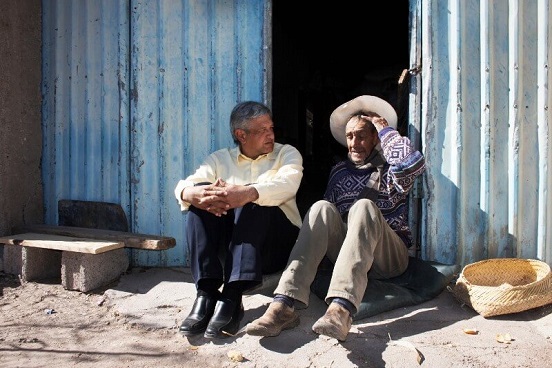 El mandatario acompañó su mensaje de una fotografía en la que aparece con un adulto mayor; ambos sentados a la entrada de una casa.