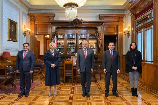 Además de los funcionarios que intercambian cargo, el Jefe del Ejecutivo estuvo acompañado de los secretarios de Gobernación y Hacienda, Olga Sánchez Cordero y Arturo Herrera, respectivamente.