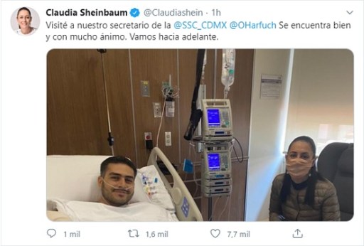 La jefa de Gobierno de la Ciudad de México, Claudia Sheinbaum, visitó al secretario de Seguridad Ciudadana, Omar García Harfuch, en el hospital en el que se encuentra internado tras el atentado que sufrió la mañana de este viernes.