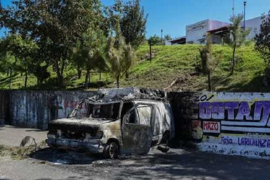 Los vehículos dañados son dos patrullas, una ambulancia de la Secretaría de Salud, un vehículo de uso oficial del ayuntamiento y dos unidades particulares, un Tsuru, propiedad de la síndica, y un Jetta, propiedad del alcalde.