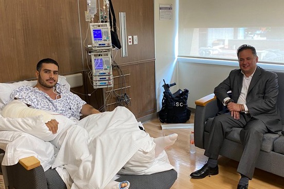 Nieto Castillo compartió una fotografía en la que se ve a ambos funcionarios en la habitación del hospital en que se encuentra Garcia Harfuch, tras el atentado contra su vida, el pasado viernes.