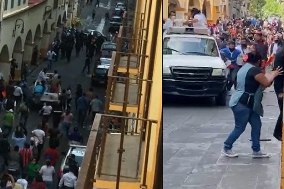 A esa hora en el zócalo de Cuernavaca había manifestaciones y bloqueos de calles, por comerciantes “tolerados”, que demandan al ayuntamiento los dejen trabajar para mantener a sus familias.