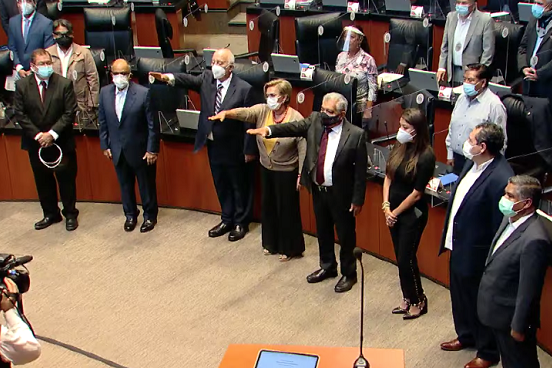 En la sesión extraordinaria de la Cámara de Senadores, la presidenta de la Mesa Directiva, Mónica Fernández Balboa, tomó la protesta de ley como senadores de la República a Concepción Rueda Gómez, Saúl López Sollano y Jorge Alberto Habib Abimerhi.