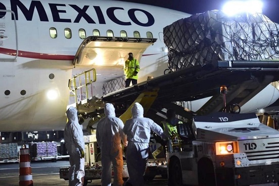 Los materiales llegaron en el vuelo número 24 del puente aéreo establecido entre México y China para abastecer a las instituciones de salud en el contexto de la emergencia sanitaria por Covid-19, agregó.