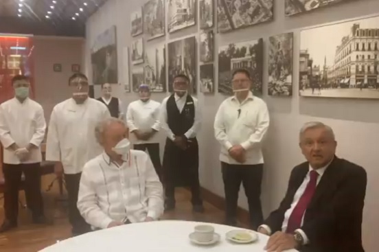 En el video el mandataro apareció con parte del personal del restaurante y el dueño del mismo, a quien hizo un reconocimiento por no despedir a sus trabajadores en los más de tres meses que estuvo cerrado el restaurante.