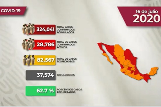 La pandemia de Covid-19 registró 6 mil 406 nuevas confirmaciones en las pasadas 24 horas, con lo cual la cifra acumulada subió a 324 mil 41. También se agregaron 668 decesos para un total de 37 mil 574 hasta el día de hoy.