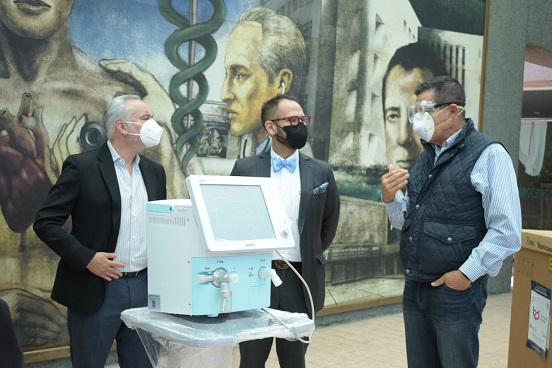 A nombre del Gobernador Alfredo Del Mazo Maza, agradeció al representante de dicho grupo, Rogelio Quintana Ávila, la entrega de este equipo, que es de suma importancia en la atención para quienes padecen COVID-19, en las diversas unidades hospitalarias.