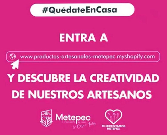 Bajo el principio #TeNecesitamosMetepec, que busca replicar en todos los habitantes las medidas precautorias por la salud, ambos sitios de internet permiten conocer a distancia las alternativas de artesanías y establecimientos comerciales ubicadas en la demarcación para elegir la de su gusto y conveniencia, respectivamente.