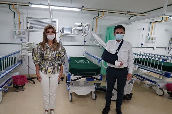 El director general del Instituto Mexicano del Seguro Social (IMSS), Zoé Robledo, y la gobernadora de Sonora, Claudia Pavlovich Arellano, supervisaron el Módulo Hospitalario Temporal del Centro de Investigación Educativa y Formación Docente del IMSS, que cuenta con 38 camas para convalecientes por COVID-19 y entrará en operación la próxima semana.