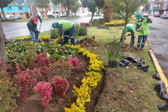 La Dirección General de Servicios Públicos de Toluca continúa con trabajos de mejoramiento de la imagen urbana, a través de la colocación de planta de ornato en áreas verdes de camellones de la capital.