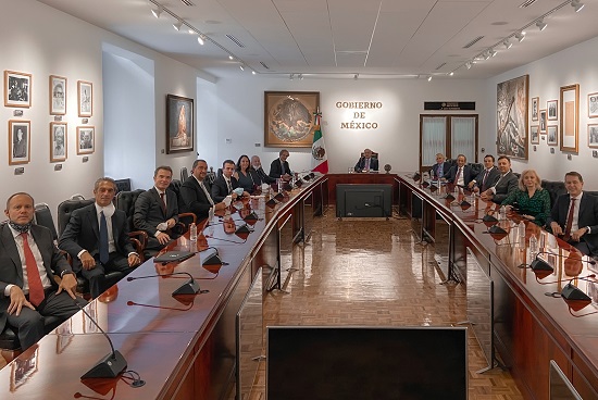 Antonio del Valle Perochena, presidente del Consejo Mexicano de Negocios; Claudio X. González Laporte (Kimberly Clark), Laura Laviada (presidenta de Santander); Alejandro Ramírez (Cinépolis), José Antonio Pérez Antón (Aeropuertos del Sureste), Carlos Slim Domit (Carso) y Jorge Esteve (Ecom Agroindusgtrial).