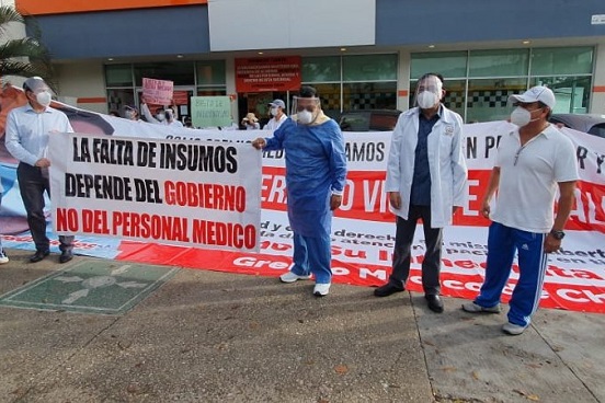 Un representante de la Federación de Colegios Médicos, que participó en la movilización, dijo que los miembros del gremio están “tristes por la detención del compañero doctor Grajales Yuca, que estaba dando su servicio en la línea de tiro”.