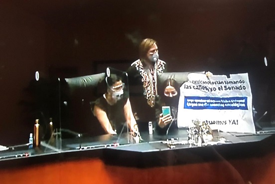 En este contexto la presidenta del Senado decidió salirse del Salón de plenos ante la falta de condiciones para iniciar la sesión del período extraordinario de sesiones.