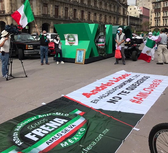 No descartó que se ocupen las plazas por tiempo indefinido, hasta lograr la destitución del Presidente López Obrador. Destacó que faltan menos de 20 semanas para diciembre, por lo que conforme realicen manifestaciones similares a las de hoy tendrán elementos para valorar su efectividad; agregó que el Consejo Rector de FRENA decidirá la periodicidad para realizar las subsecuentes ocupaciones pacíficas de plazas y aseguró que en este momento se enfrentan dos enemigos: la pandemia y el mal gobierno de López Obrador.