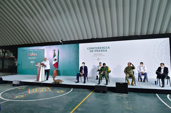 La habitual conferencia de prensa matutina se realizó este martes en el Cuartel General de la 13ª Zona Militar, en Tepic, en el inicio de una gira presidencial por estados del Pacífico, que también incluirá Sinaloa, Sonora y Baja California Sur.