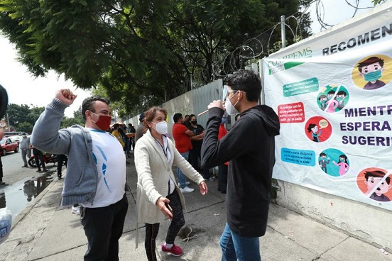 Sin embargo, las sedes designadas han establecido diversos protocolos sanitarios, donde el aspirante, al que se le pide que use cubrebocas y careta, se le proporciona gel antibacterial y se le toma la temperatura corporal, además de que en el aula se garantiza la sana distancia.