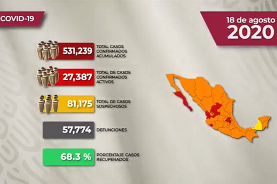 En la conferencia de prensa vespertina en Palacio Nacional, el funcionario informó que en las últimas 24 horas se confirmaron 5 mil 506 casos del virus SARS-CoV-2, por lo que el registro acumulado subió a 531 mil 239. Este dato, por su parte, da cuenta de que la pandemia sigue activa en el país.