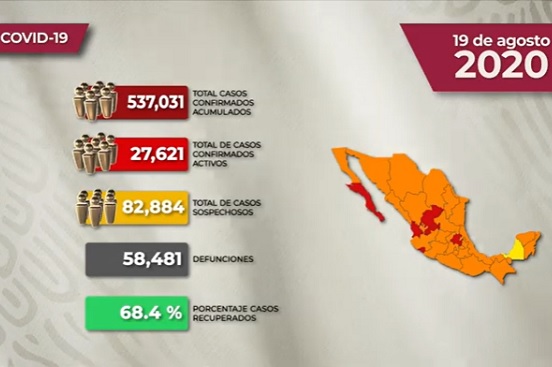 El registro de casos de Covid-19 aumentó hoy con 5 mil 792 casos confirmados, con lo que la cifra acumulada llegó a 537 mil 031. También se tuvo el resultado positivo en 707 pruebas correspondientes a personas que murieron a causa de complicaciones de la infección para un total de 58 mil 481.