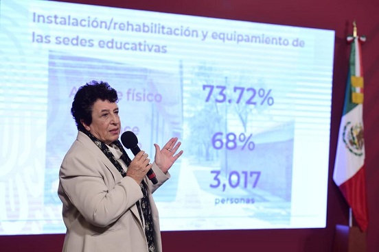 En promedio, detalló, hay un avance físico de las obras de 73.72 por ciento y el financiero de 68 por ciento, con la colaboración de 3 mil 017 trabajadores para los procesos de instalación y habilitación.