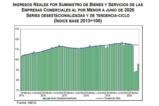Sin embargo, en su medición anual los ingresos por suministro de bienes y servicios de las empresas comerciales al por menor disminuyeron 17.2 por ciento.