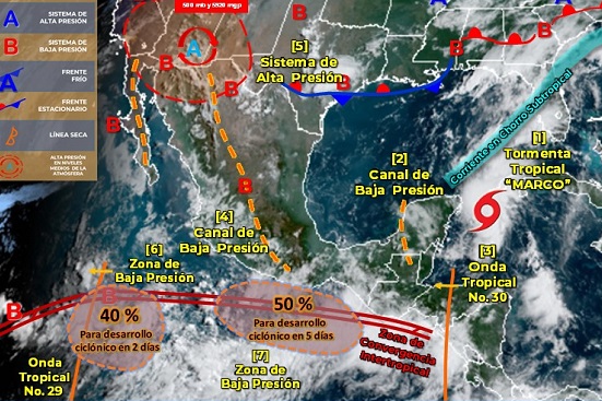 El Servicio Meteorológico Nacional ha pronosticado que la tormenta tropical Marco, que se ubica en el Caribe, podría convertirse esta noche en huracán.