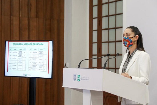 En ese sentido, explicó, que el parámetro para esta nueva etapa de la estrategia es atender a las colonias con 10 o más casos activos, así como a las colindantes que registran cinco o más contagios activos.
