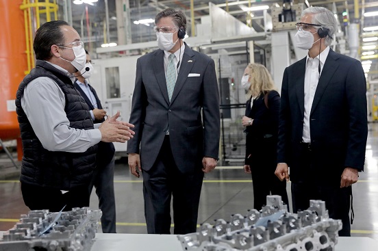 Vía Twitter, Del Mazo Maza dio a conocer su encuentro con el Embajador estadounidense, con quien realizó una visita guiada para conocer los procesos que se desarrollan en estas plantas del sector automotriz.