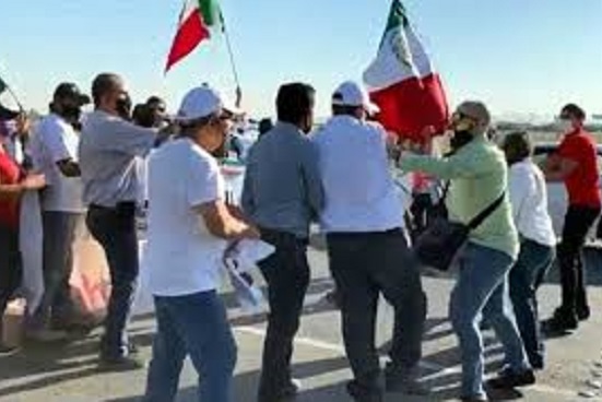 Monterrey, NL. Simpatizantes y opositores del presidente Andrés Manuel López Obrador se enfrentaron a golpes, este jueves, e impidieron por unos 10 minutos el avance de su vehículo cuando salía de la Séptima Zona Militar, en donde este jueves ofreció su tradicional conferencia matutina, para dirigirse a la refinería de Petróleos Mexicanos, en Cadereyta.