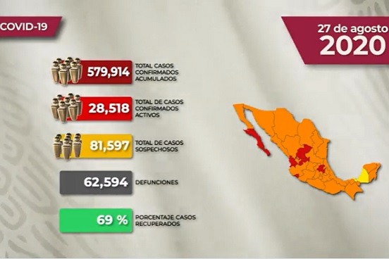 De los casos sospechosos, dijo que al día de hoy son 81 mil 597, mientras que se han estudiado a un millón 304 mil 776 personas, de las cuales 643 mil 265 tuvieron un resultado negativo para el virus SARS-CoV-2.