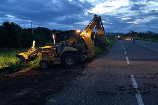 En Jalisco, en el kilómetro 253 de la carretera Guadalajara-Barra de Navidad y en el kilómetro 9 de la carretera Melaque-Puerto Vallarta, la circulación es en un sentido; el kilómetro 7 del Libramiento de Melaque registra una interrupción total del tránsito por falla de alcantarilla y terraplén, en una longitud de 120 metros y ya se trabaja en su reparación.