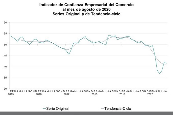 Aún con ello, los empresarios del comercio aumentaron en 0.8 puntos, también respecto a julio y con cifras destacionalizadas, la idea de que la empresa se encontrará en mejores condiciones en el futuro.