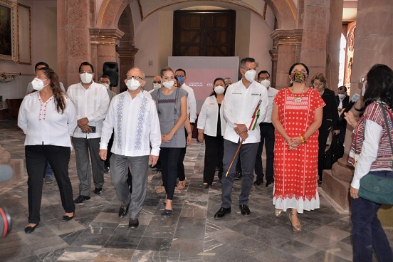 En la ceremonia, que se realizó guardando los protocolos indispensables de sana distancia, estuvieron también la presidenta municipal de Huajuapan, Juanita Cruz Cruz; el director general del Instituto Nacional de Antropología e Historia, Diego Prieto Hernández; la directora general del Instituto Nacional de Bellas Artes y Literatura, Lucina Jiménez; el director del Centro INAH Oaxaca, Omar Vázquez; y el administrador de la Diócesis de Huajuapan de León, el padre Josué Rogelio Palma.