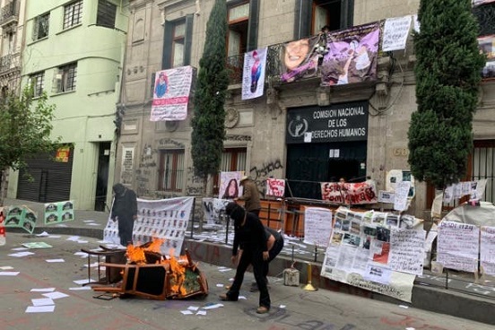 Cabe recordar que desde el jueves 3 de septiembre un grupo de mujeres mantiene tomada la sede del Centro Histórico de la CNDH, a raíz de la protesta, un día antes, de familias víctimas de delitos contra niñas y niños en el estado de San Luis Potosí.