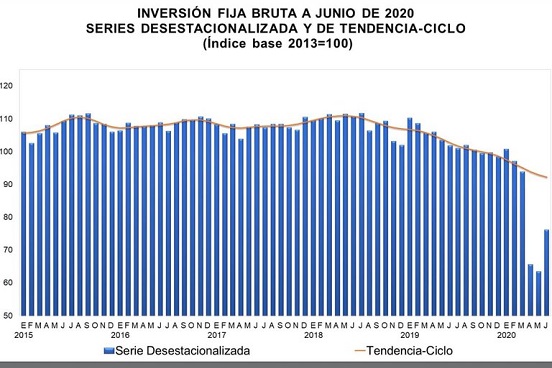 A tasa anual, la inversión fija bruta siguió cayendo y se hundió un 24.1% en junio, en su decimoséptimo mes consecutivo en declive, de acuerdo con el reporte.