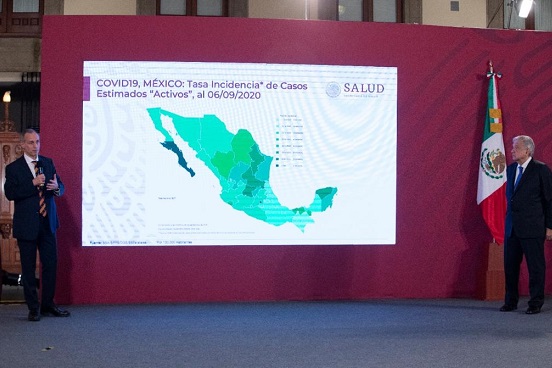 Al presentar el Pulso de la Salud, el funcionario indicó que en esta etapa de la epidemia, en cada entidad se presenta una situación diferente. “La velocidad a la que ocurren los contagios, la cantidad de contagios, la probabilidad de que haya rebrotes locales, depende de las condiciones territoriales, demográficas, socioeconómicas y otras de cada entidad federativa”.