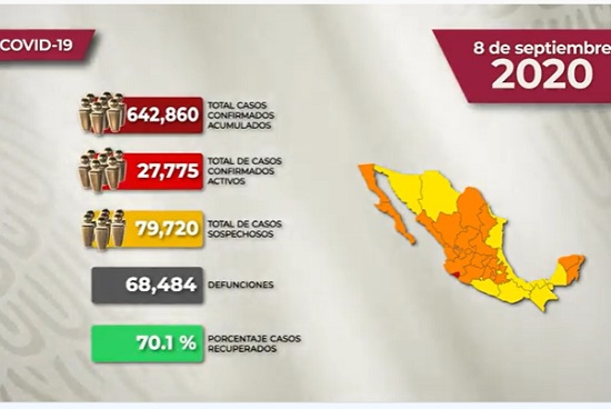 También entre lunes y martes se sumaron 703 fallecimientos para un total de 68 mil 484 al día de hoy. El primer deceso en México, por las complicaciones del coronavirus tuvo lugar el pasado 18 de marzo.