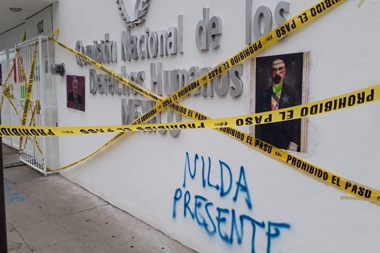 Alrededor de la oficina de la CNDH, fue colocada una cinta amarilla que prohíbe el paso, para simbólicamente cerrar esta oficina que este jueves parece no estar laborando: solo se encuentra personal de seguridad al interior.
