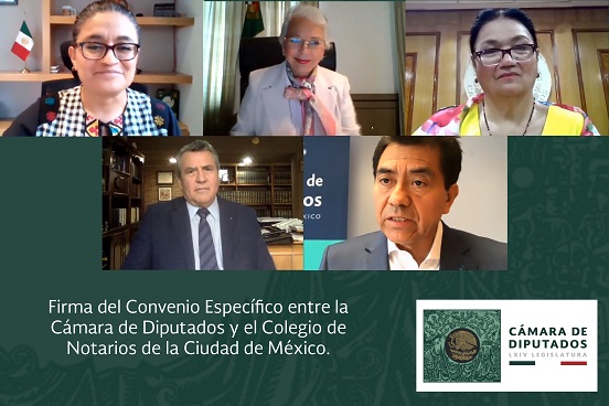 La Cámara de Diputados y el Colegio de Notarios de la Ciudad de México firmaron, de manera virtual, el Convenio Específico de Colaboración, con el objetivo de brindar información en materia testamentaria y notarial, en el marco de la campaña “Septiembre, mes del Testamento”.