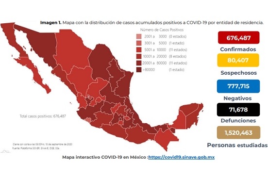 En las pasadas 24 horas se confirmaron 4 mil 771 casos de Covid-19, con lo que el registro acumulado de personas que han tenido la enfermedad en México llegó a 676 mil 487. También se sumaron 629 decesos para un total, al día de hoy, de 71 mil 678.