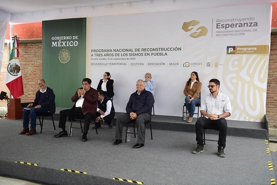 Puebla, Pue. El comisionado Nacional para la Reconstrucción, David Cervantes, informó que se ha concluido con 70 por ciento de las acciones de reconstrucción y restauración en afectaciones ocasionadas por los sismos de septiembre de 2017 y febrero de 2018 en 11 estados. Garantizó que al finalizar el año “no habrá alumnos sin aulas ni familias viviendo fuera de sus viviendas”.
