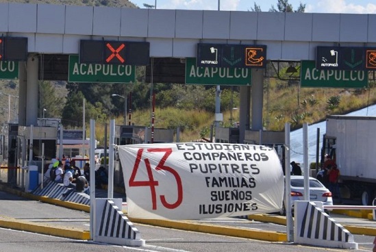 Normalistas de la Escuela Rural Raúl Isidro Burgos de Ayotzinapa tomaron la caseta de la Autopista del Sol en este puerto, como medida de protesta al cumplirse seis años de la desaparición de sus 43 compañeros.