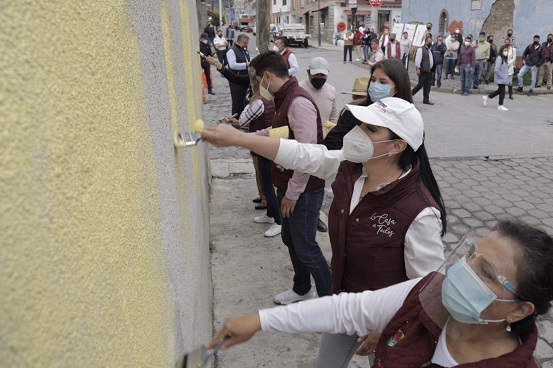 La presidenta municipal Gaby Gamboa, acompañada de integrantes del cuerpo edilicio y titulares de la administración pública local, así como de autoridades auxiliares y con la presencia de vecinos de ambos barrios, comenzó los trabajos aplicando pintura en una de las casa habitación, proyecto que significará una inversión de 10.5 millones de pesos.