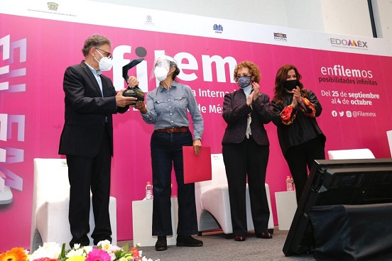Durante esta ceremonia inaugural fue entregado el Premio FILEM 2020 a la escritora y crítica literaria Cristina Rivera Garza, quien a través de su trabajo impulsa las letras y cultura de México. La también académica recibió la escultura “Levitación”, del artista universitario Leonardo Montelongo.