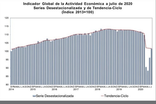 A pesar del resultado negativo registrado en julio, la actividad económica logró superar los resultados más bajos que se han registrado desde que se realiza la medición y los cuales explicaron por el confinamiento para evitar contagios de coronavirus, pues de enero a mayo se contrajo 20.9 por ciento, mientras que en junio logró recuperarse parcialmente 8.8 por ciento.