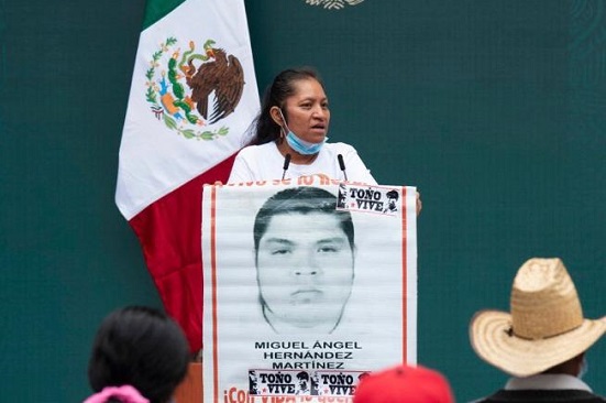 María Martínez, madre de Miguel Ángel Hernández Martínez, habló a nombre de los familiares; lamentó llegar al sexto año –desde los hechos ocurridos el 26 y 27 de septiembre de 2014 en Iguala, Guerrero– sin mayores hallazgos, por lo que solicitó que fortalezcan las investigaciones, “busquen, señor, a nuestros hijos. Por ahí los tienen”.