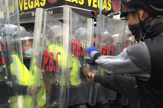 Los agentes tomaron la decisión luego que de ese grupo de jóvenes lanzó un explosivo casero contra transeúntes. Los policías señalan que para resguardar la seguridad de los miles de manifestantes que marchaban en tranquilidad se mantendrán encapsulados los agresores, identificados con un grupo anarquista.