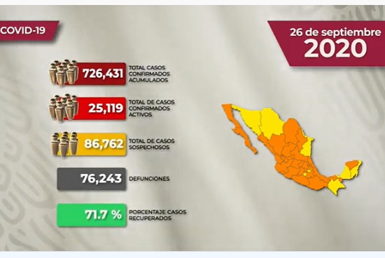 México reportó este sábado 5 mil 573 nuevos casos confirmados de coronavirus, elevando el total a 726 mil 431, reportaron autoridades de salud del país, que va levantando restricciones tratando de regresar a cierta normalidad.