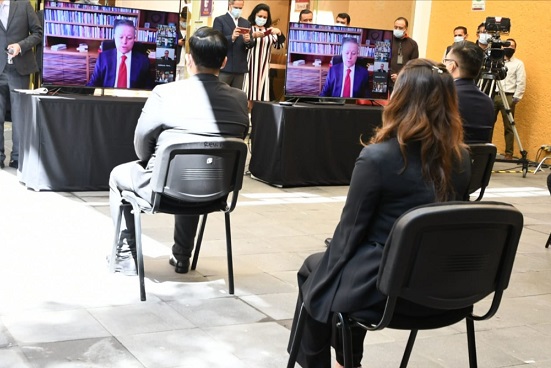 El ministro presidente de la SCJN, Arturo Zaldívar Lelo de Larrea, explicó que tuvieron que hacer esta ceremonia de esta manera debido a las situaciones complejas originadas por la pandemia, pero que el acto protocolario tiene el mismo significado simbólico y legal que si hubiera sido presencial.