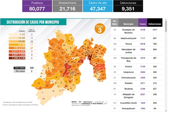 Confirmó también que 17 mil 914 personas se mantienen en aislamiento domiciliario al padecer de forma leve la infección por el virus SARS-CoV-2 y que se acumulan 80 mil 077 casos positivos, 21 mil 716 sospechosos, 100 mil 557 negativos y lamentablemente 11 mil 680 defunciones.