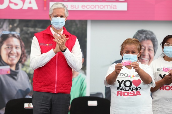 Acompañado por el Secretario de Desarrollo Social, Eric Sevilla Montes de Oca, el mandatario estatal puntualizó que el Salario rosa también es un respaldo oportuno al bolsillo de las familias, pues la pérdida de empleos a causa de la pandemia afecta en gran medida la economía en los hogares, donde las amas de casa deben hacer rendir cada peso que llega y por eso este programa está dirigido a ellas.